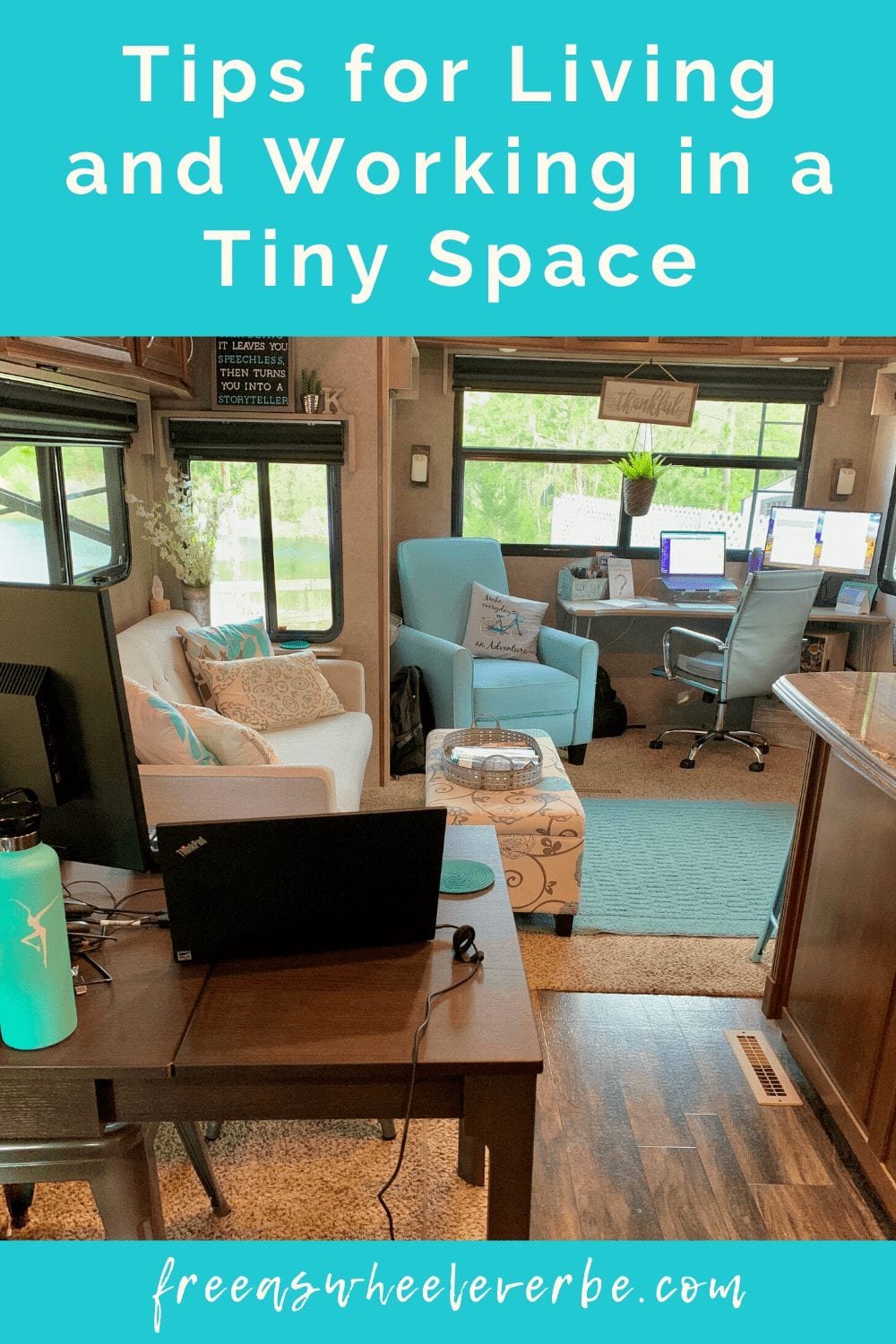 - Life doesn’t always go as planned and you need to adjust to make all parties comfortable especially when living in a tiny space. Another fellow nomad and friend, Glenda from The Status Foe, shares her experience with being flexible taking work phone calls. “One of the biggest challenges my husband and I had in our motorhome is when both people needed to talk on the phone for work. In such close quarters we end up talking over each other and it’s not comfortable for either of us or the people on the other line. We usually compromise by having one person move to our back bedroom with their laptop while the other is on the phone. We take turns doing this so no one feels like they are always stuck working on the bed. We’ve been doing this for a few years and it works for us.”